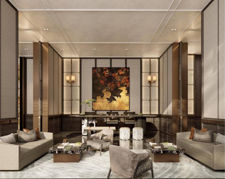 约1.9万㎡高定度假生活艺境园林,搭配古桩乌桕、百年造型映山红、特级红果冬青等名贵木种,辅以普拉达绿、意大利雪山蓝、安哥拉黑、幻影蓝、蓝钻等世界奢石,同频顶奢酒店式度假场景,交响滇池生态韵律;