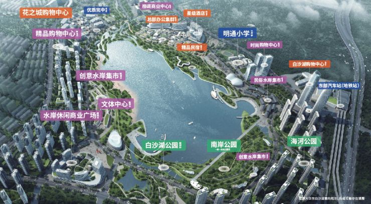 项目周边有环白沙湖商业中心(规划中),福缇商业中心、花之城旅游商业中心等。项目西侧配置约700㎡商业+900㎡地下商业,规划业态为生鲜超市,可满足居民日常购物需求。