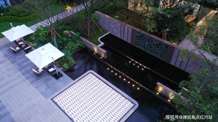 以现代美学打造“四境六园”园林,融合自然景观与建筑美学,柔和曲线搭配酒店式仪式感,形成层次丰富的归家礼序。耗资数十万打造近300㎡帆船形水景,搭配涌泉水景,绿植覆盖率高,四季有景,兼具美学与实用性。