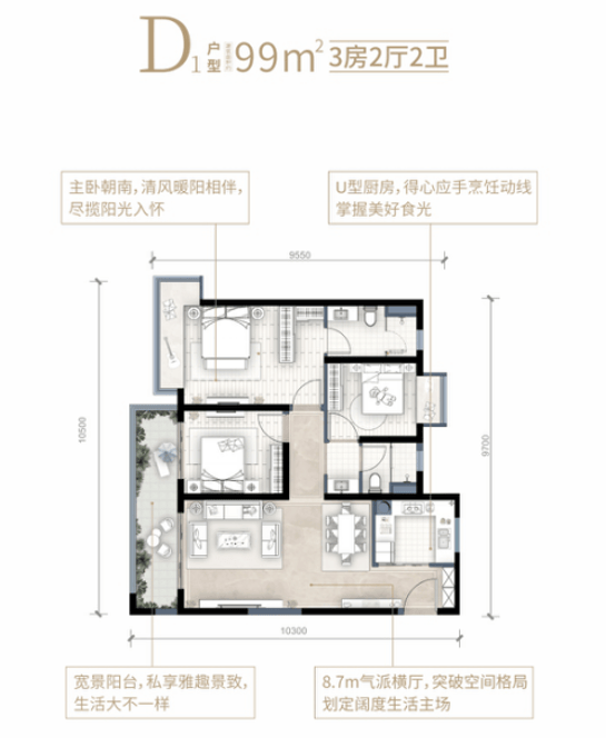 建面约69-99㎡阔景高层;建面约110-128㎡宽境洋房