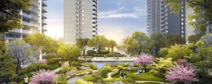 项目周边坐拥5大公园(尖山、马料河、观山公园、周山公园、水林果库,同时北面与东面连片森林公园环绕,植被丰富。项目内部园林整体融合山、水、人一体设计双水岸中央景观,精于双岸水景搭配,辅以点景植被,形成四季有花,天天有景的园林景观。