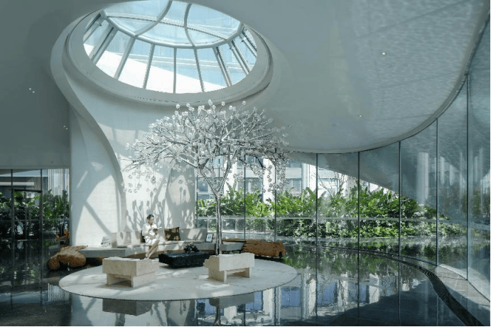 在精选用材的同时,在园林造景的设计上,项目也十分注重园林造景与业主生活的实用性互动,以林下空间作为主旋律的光环森林归家廊道;2500㎡阳光草坪上业主专属的小巨蛋阳光会客厅、涌泉边的水波阅读馆;开放式首层架空层,将自然引入室内艺术庭院打造妈咪宝乐园、邻水会所、林间会所等多变互动社交空间…充分满足不同年龄段业主群体的需求,足以看见美的·北京路9號对品质生活的匠心投入。