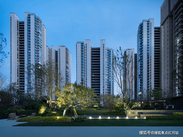 产品:精装纯板式高层,围合式布局,约12000㎡中庭园林,超百米楼间距