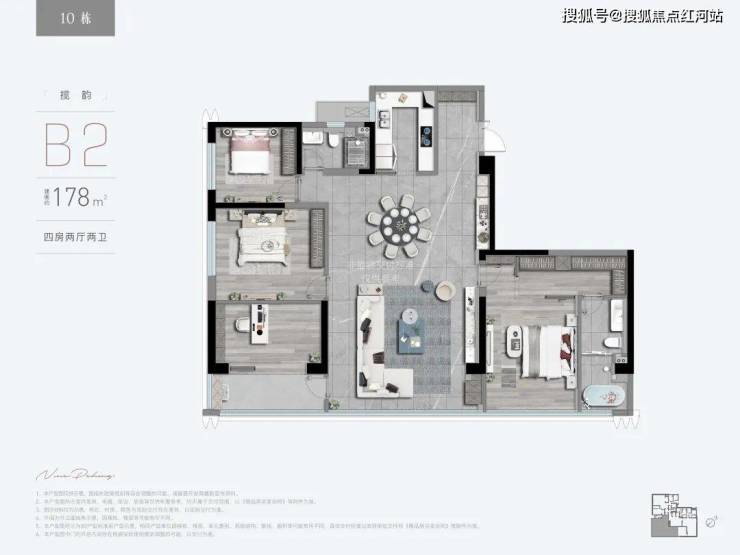 B2揽韵:建面约178㎡ 四房两厅两卫