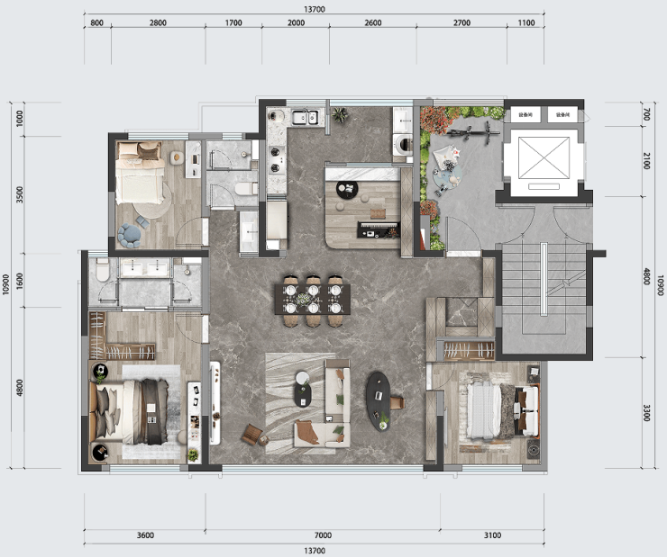 配置比肩甚至超越180㎡级别的大平层,且每个空间的尺寸也堪比大平层的尺度。