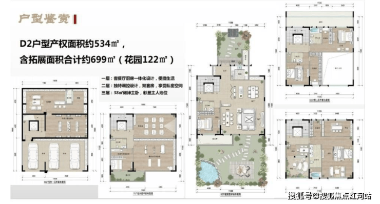 D1(336㎡):10室3厅6卫,南北通透,厨卫全明,双主卧套房,地下三层高拓展;
