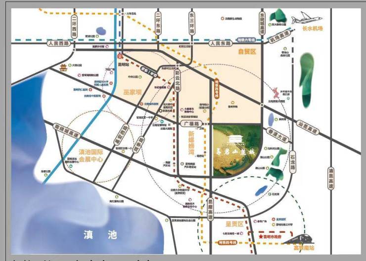 项目位于昆明市主城官渡区,地处昆明南市区核心地带,距离中心区不足10公里(距离南平街13公里),25分钟直达昆明长水机场;距离昆明南站10公里,30分钟车程。此外,项目紧邻昆明轨道交通四号线已通车,最近地铁站广卫站仅2公里路程,项目片区居民的出行方式更为便捷。