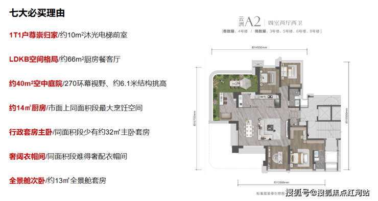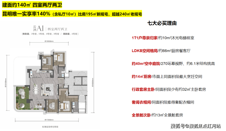 六、户型研判:140-176㎡空中岛院,适配顶豪全周期需求