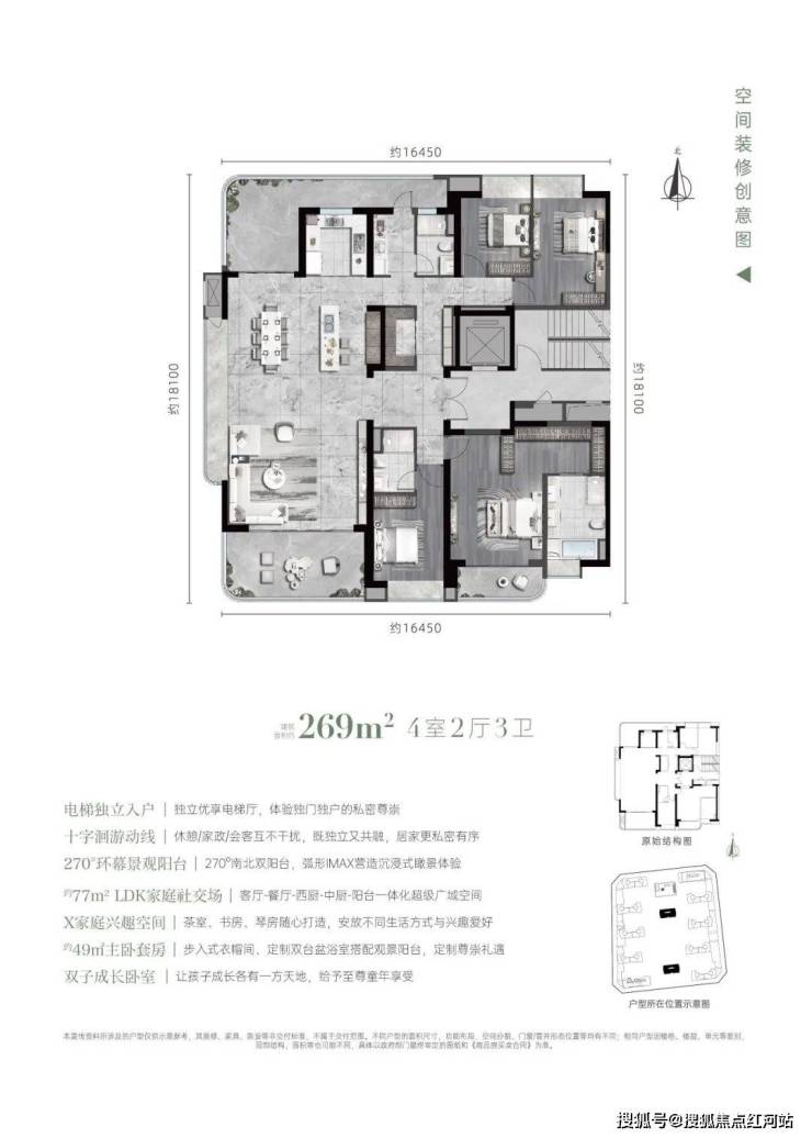 建面158-269㎡全龄化户型,158-199㎡户型适配改善家庭,269㎡户型满足终极置业需求。一梯一户设计保障私密性,精装交付省去装修烦恼,绿金科技系统适配老人、小孩等不同人群的居住需求,承载全家舒适生活。