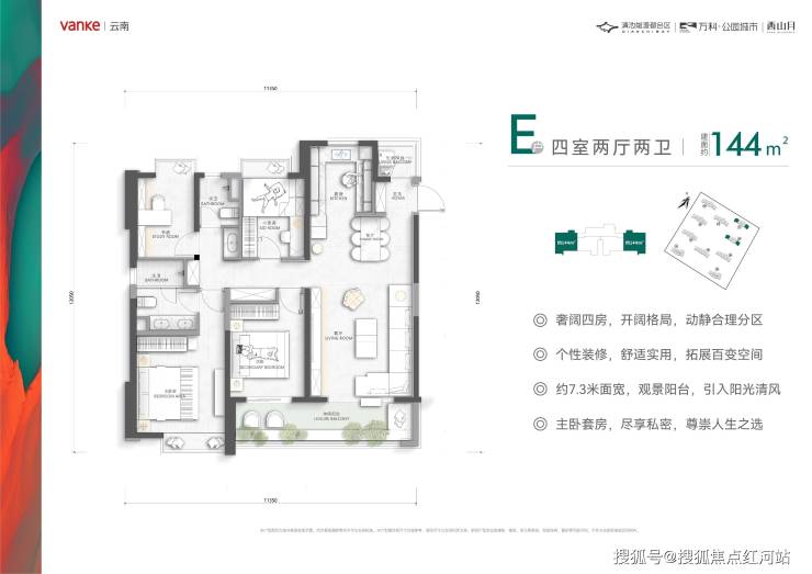 项目主力户型涵盖106-144㎡,格局方正、全明通透,兼顾实用性与舒适度。A7地块105-132㎡户型,空间紧凑无浪费,刚需刚改友好;144㎡现房户型,尺度开阔,适合改善家庭。A6西山月二期141-144㎡四房,端户独立入户,私密性强,LDK餐客一体+7.3米大开间阳台,270度观景视野,内嵌收纳墙+全赠送生活阳台,空间利用率拉满,明厨明卫无暗房,居住体验感拉满。