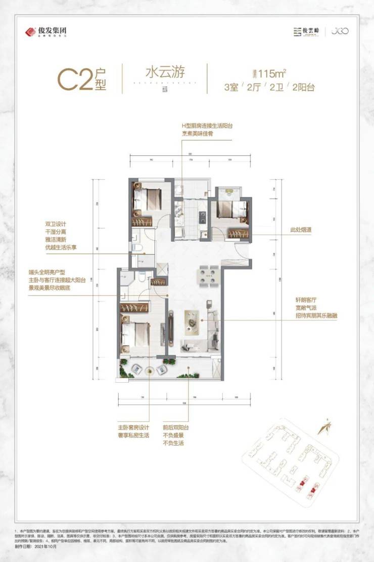 俊云峰建面约89-128㎡登科台精装修交付,以人性化居家设计体系匠心为业主打造四大精装系统:厨卫系统、智慧生活系统、起居空间系统、全屋收纳系统。且全屋精装配置有中央空调、电动晾衣架、松下风暖浴霸;厨房更是燃气灶、抽油烟机、水槽一体式洗碗机、厨余垃圾处理器、净水器、蒸箱等大品牌家电配套齐全,高品质精装标准,用心为业主筑起品质之家,让业主体验到更贴心的服务,尊享更便利的生活。