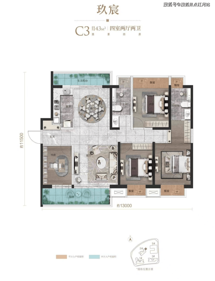户型鉴赏,高得房率适配全周期需求