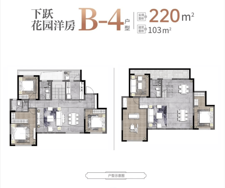 [B-4]建筑面积约103㎡,实得面积约220㎡