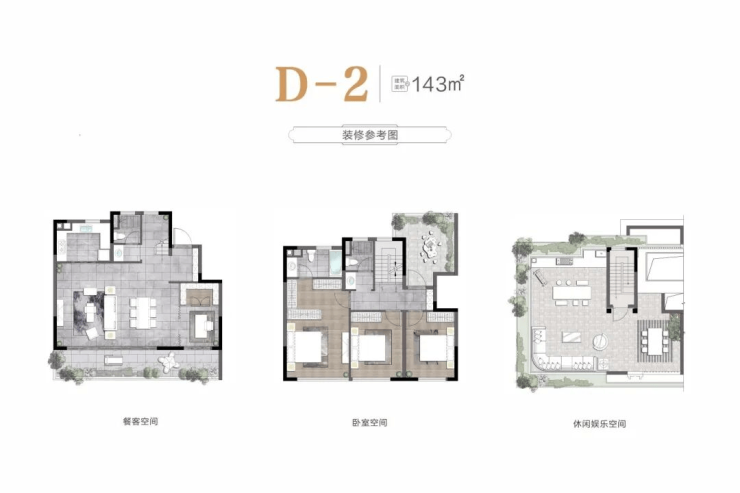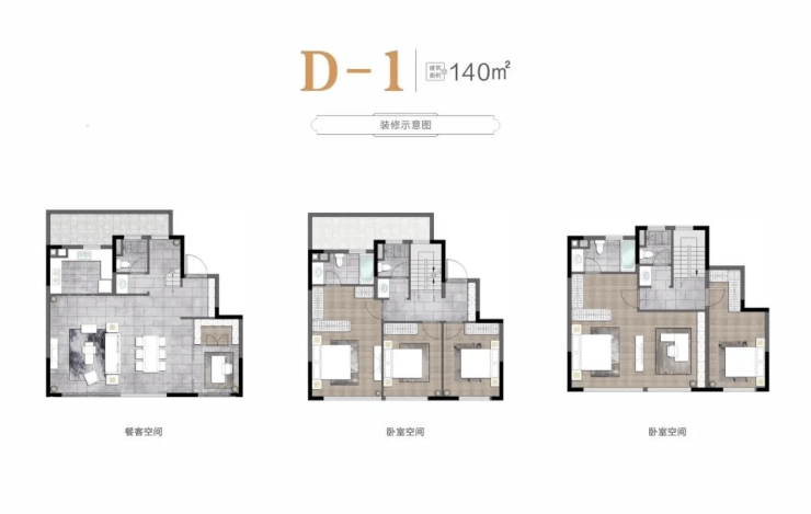 D-1户型,六室两厅五卫,建筑面积约140㎡,实得约300㎡+