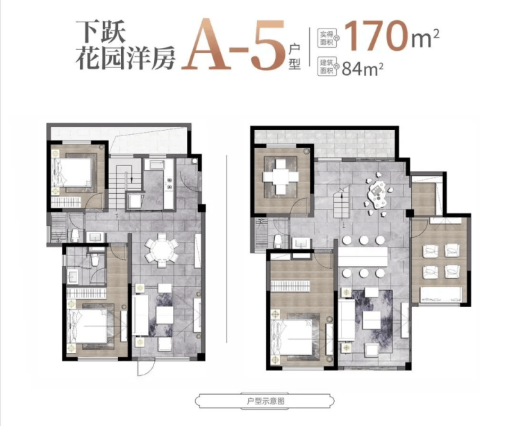 [A-5]建筑面积约84㎡,实得面积约170㎡