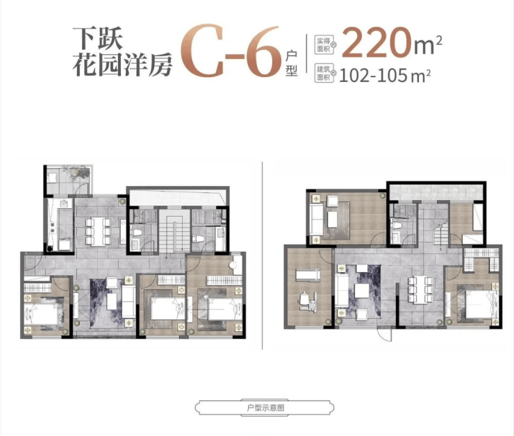 [C-6]建筑面积约102-105㎡,实得面积约220㎡