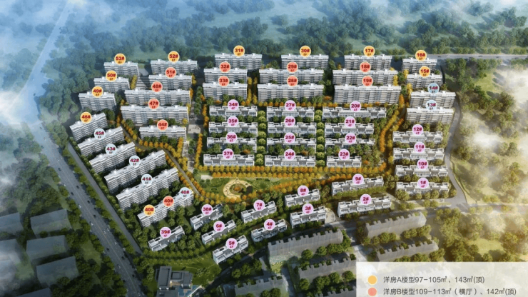 【洋房】84-142㎡,高8层,平层精装交付,顶层大平层,底跃毛坯交付,洋房楼间距(南北21米、东西16.3米以上),户型设计以大面宽为主。