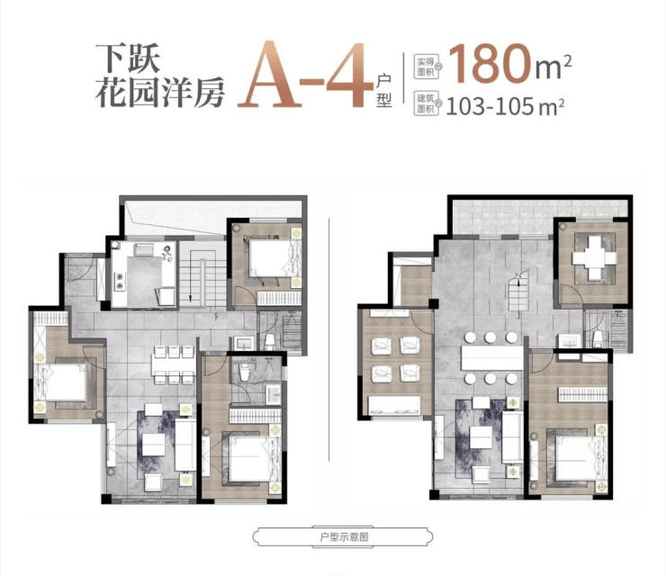 [A-4]建筑面积约103-105㎡,实得面积约180㎡
