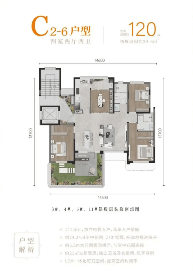 项目占地约56亩,容积率低至2.1,拟建17栋总高9层的洋房,建面约104-130m²户型,均带25-33m²空中露台,得房率高达136%-252%。