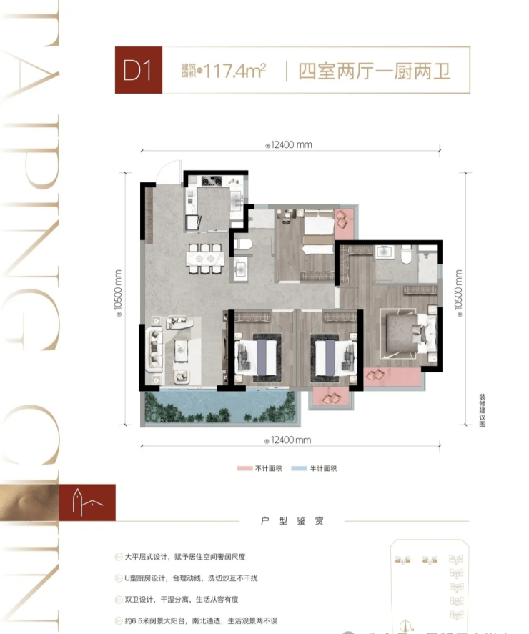 户型设计合理:高层建筑面积约86-117㎡,赋予室内空间优越的采光和开阔的视野。