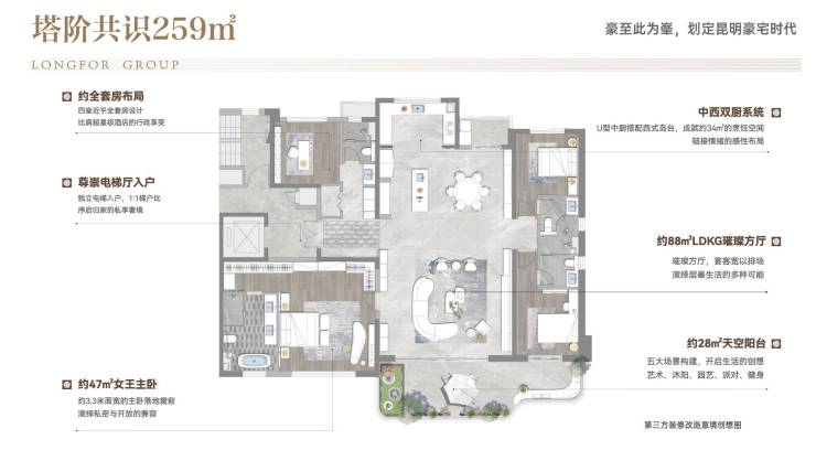 最纯粹高端改善大平层项目,主城在售大平层唯一不带写字楼、公寓、回迁房、幼儿园,纯粹高端改善大平层项目;