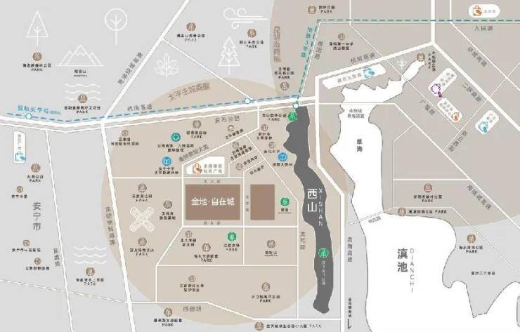 项目坐落于昆明太平新区,拥有得天独厚的生态环境。这里约70%的森林覆盖率,让每一寸空气都饱含清新与自然的气息;约100%的空气质量优良率,为您和家人的健康提供坚实保障。毗邻昆明三大城市级樱花大道之一的太平最美樱花大道,每逢樱花盛开之际,烂漫的粉色花海如梦如幻,仿佛将您带入一个浪漫的童话世界。太平新区作为昆明周边地热温泉富集地,享有“天下第一汤”的美誉,闲暇时光泡一泡温泉,洗去一身的疲惫,尽享惬意生活。