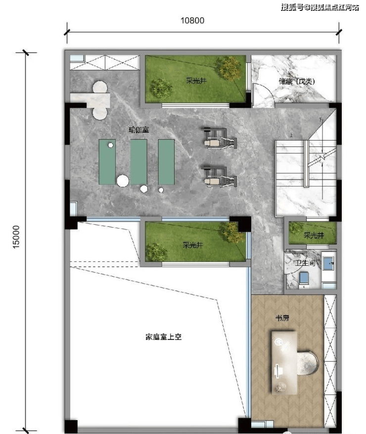 C1 建面约330㎡,露台面积约48㎡,可拓展最大面积约492㎡
