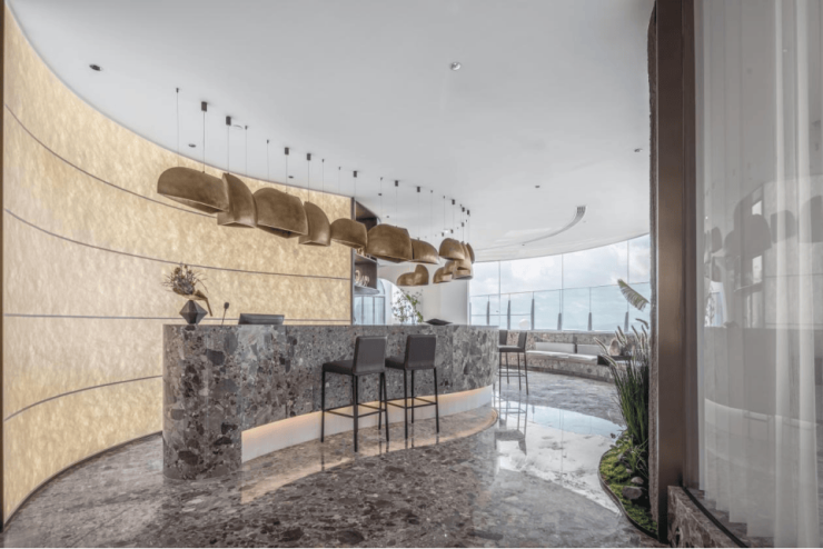 当下昆明豪宅基本都有会所,但像山海湾8号这样在前海寸土寸金的土地上,不惜重金打造极为稀缺的约4000㎡超星级酒店式下沉泛会所和高约130米天际会所。