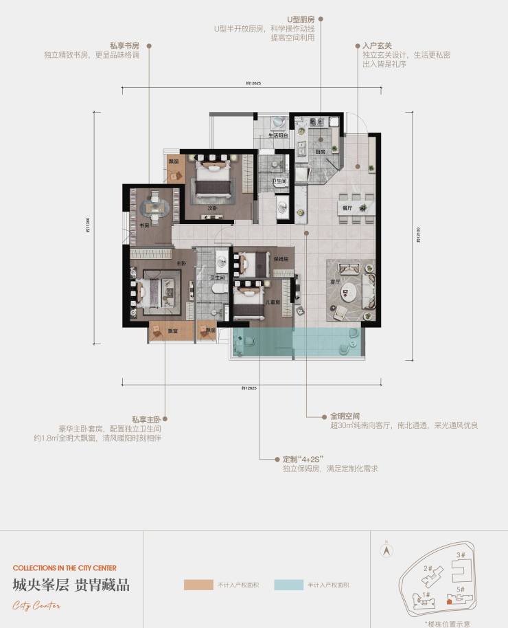 166户型品鉴(约123+43㎡):“4+S”室-两厅-双卫-双阳台,灵活成长型空间,全龄段“无限系”豪宅。阔尺空间,满足全家生活所需,幸福一步到位。