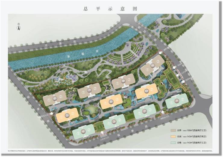 项目旁采莲河畔约2.6万方云栖公园、距大观公园/西华公园约1.5KM