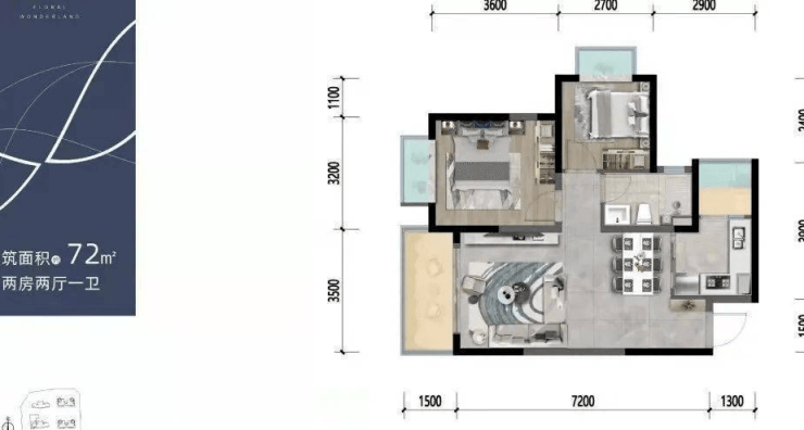 在售户型:建面约72-110m²