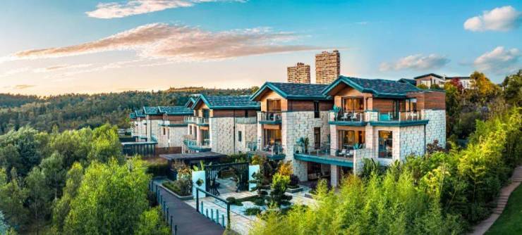 玉龙湾康谷坐拥令人艳羡的自然景观资源。项目周边群山环抱,连绵起伏的山峦宛如绿色的屏障,将喧嚣隔绝在外。山上植被繁茂,森林覆盖率极高,空气中负氧离子含量丰富,每一口呼吸都如同对身心进行一次深度滋养。