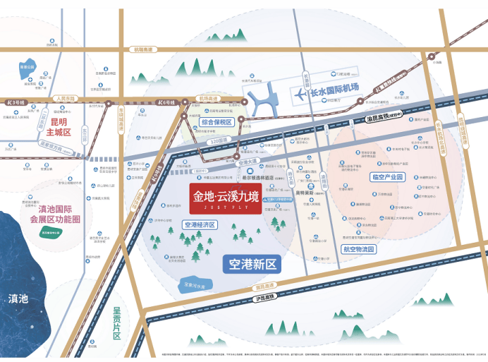 项目毗邻10万方奥特莱斯广场(规划中)、空港现代广场(规划中)、空港文化广场(在建中)三大商圈,临近希尔顿酒店及希尔顿逸林酒店(在建中),于飞云下漫步繁盛都会;近享三家三甲医院:广安门医院(规划中)、昆明市滇中新区东区人民医院、空港经济区医院,优质医疗全时护航,尽享优居生活。
