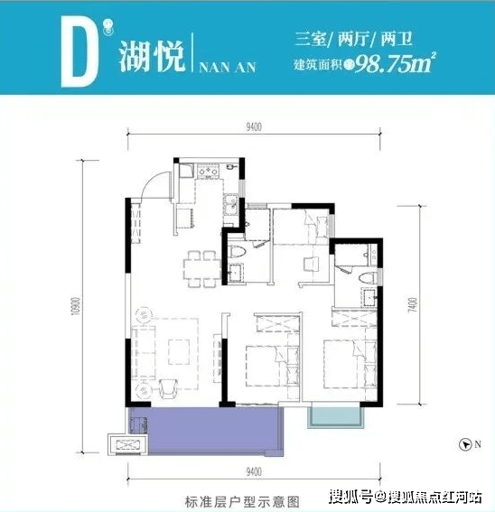 98.75㎡ D湖悦(3室2厅2卫,端头景观房)