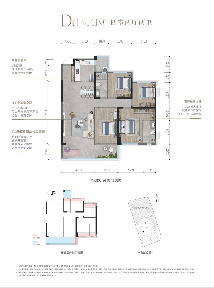 D户型 建筑面积约141㎡ 四房双卫(灵动四房)总价105-132万买品质四房