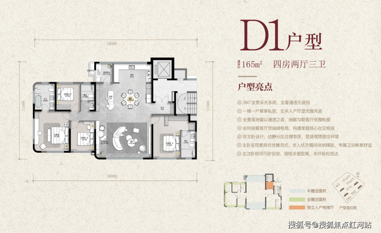 主力户型143-198㎡精装大宅,70年产权,新规设计空间使用率高,纯板式南向通透。270°观景舱、LDK一体化设计,主卧套房配置,143㎡适配改善刚需,165-198㎡满足高端改善。