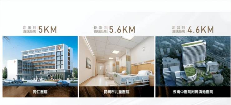 医疗:项目5公里内涵盖了省妇幼保健院、星耀医院、 同仁医院、省中医院滇池分院、市儿童医院等 ,其中同仁医院、省中医院、省妇幼保健院为国家三级甲等医院 。区域范围内可以享受到综合医院、专科医院、门诊服务等全方位的医疗配套。