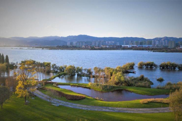 4万平米湿地公园 山海湿地环伺,城市绿肺,生态宜居之地,项目在社区门口通过引入草海活水打造生态湿地公园(小区建筑与水面之间约4万平米)