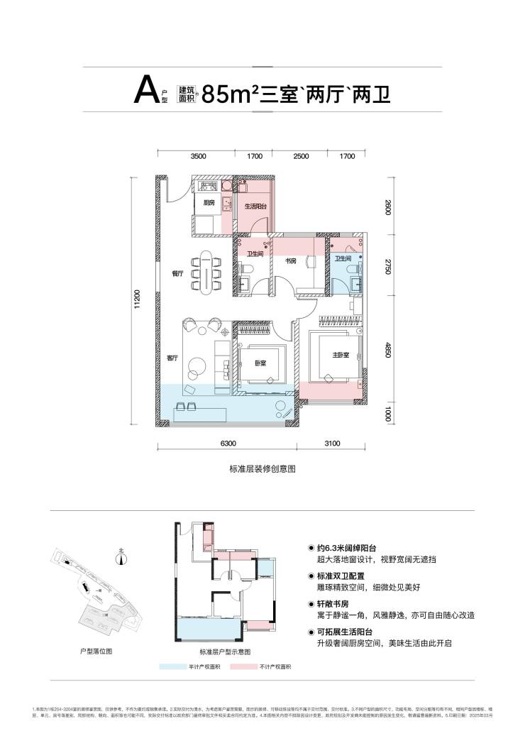 T6——89㎡ 全明端头三房,使用率约99.65%