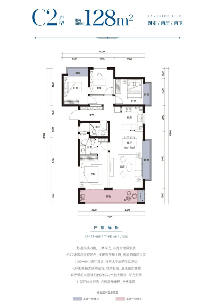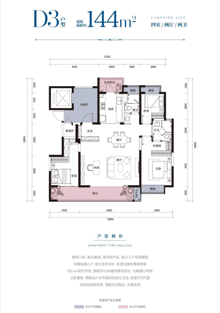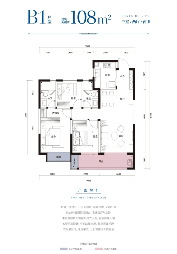 类洋房(16-18层):2T2户电梯入户,南北通透,赠送超大电梯厅,私密感拉满;