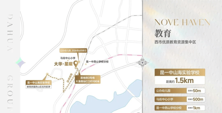 昆一中山海实验学校、公办幼儿园(预计2026年6月移交)、马街中心小学、昆一中西山学校分校。