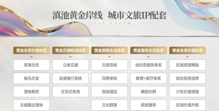 稀缺生态价值、高端居住价值、城市级文旅休闲价值。项目位于滇池北岸,坐享滇池黄金岸线红利。