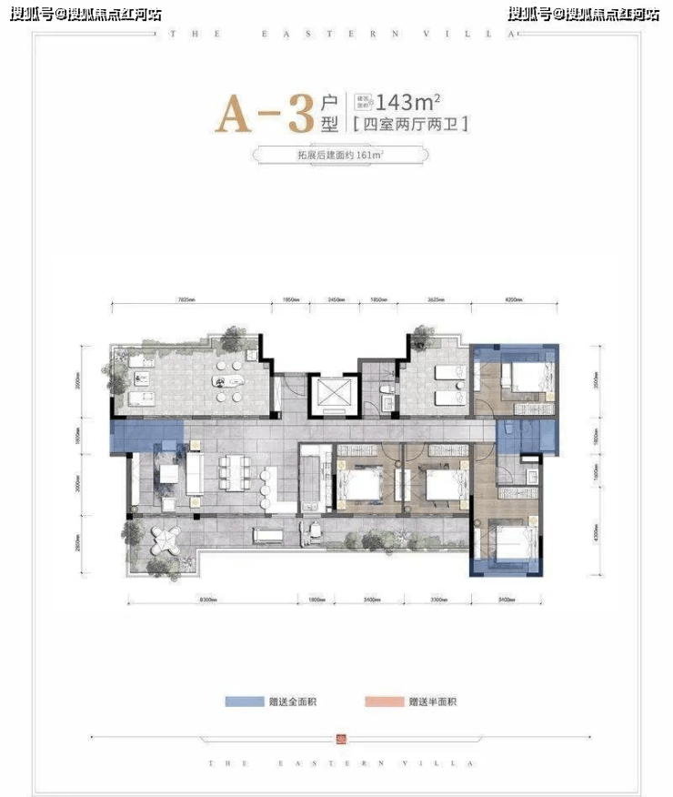 面积段:洋房97-143㎡(实得117-290㎡);叠墅约141-143㎡(实得270-290㎡);合院建面约121-140㎡(实得面积约315-430㎡)