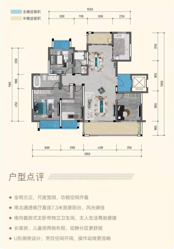 全系南向三面宽设计,宽景阳台,套房式主卧、多功能房等标配空间