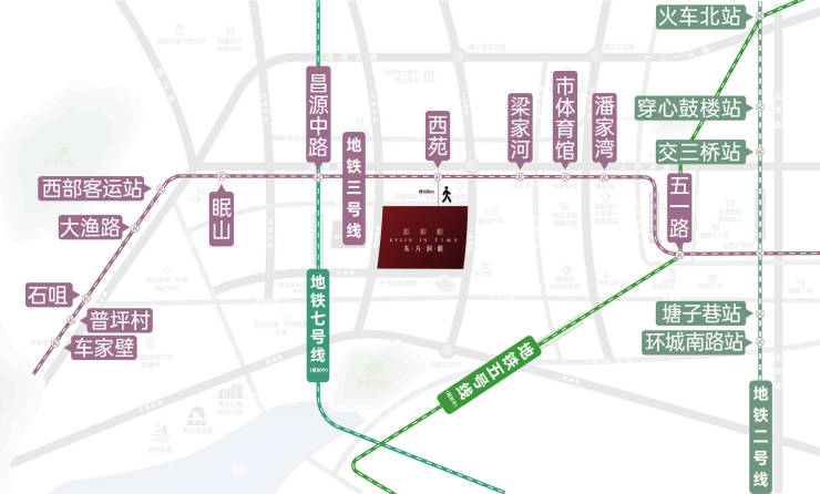 毗邻昆明主城“十字”发展主轴线-人民西路;连接市中心与西市区的重要通道,与西三环、西二环相交,加之地铁3号线的全线通车,极大提升了交通网络的核心地位