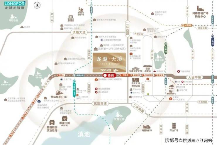 交通:零距离地铁3号线西苑站D口,1站达悦云天地,3站抵翠湖,5站直通顺城、王府井商圈,三横三纵路网环绕,自驾轨交双便捷;教育:坐拥五华区一梯队优教,划片高新一小经典校区,邻近昆十四中(一级一等完中),全龄优教护航;商业:近享顺城、恒隆、王府井等顶流商圈,项目自带10万方商业综合体,补齐西二环商业短板,下楼即享繁华;医疗:3站地铁直达云大医院、工人医院、昆华医院等三甲医院,全维医疗护航健康;生态:漫步可达翠湖、昆明老街,兼顾烟火气与人文底蕴。