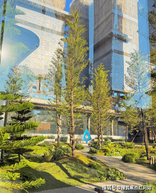项目五感垂直园林实景打造,超级门界、鎏光水境、超级中庭、悬浮云廊、大师花园等景观实景呈现,17米钻石之心穹顶天幕、南洋杉林、下沉庭院错落有致,奢石铺装、水景雕塑细节考究,全冠移植名贵树木,四季有景、步移景异,在滇池畔打造可居住的立体美术馆,既具仪式感,又有疗愈感,顶奢居住氛围拉满。